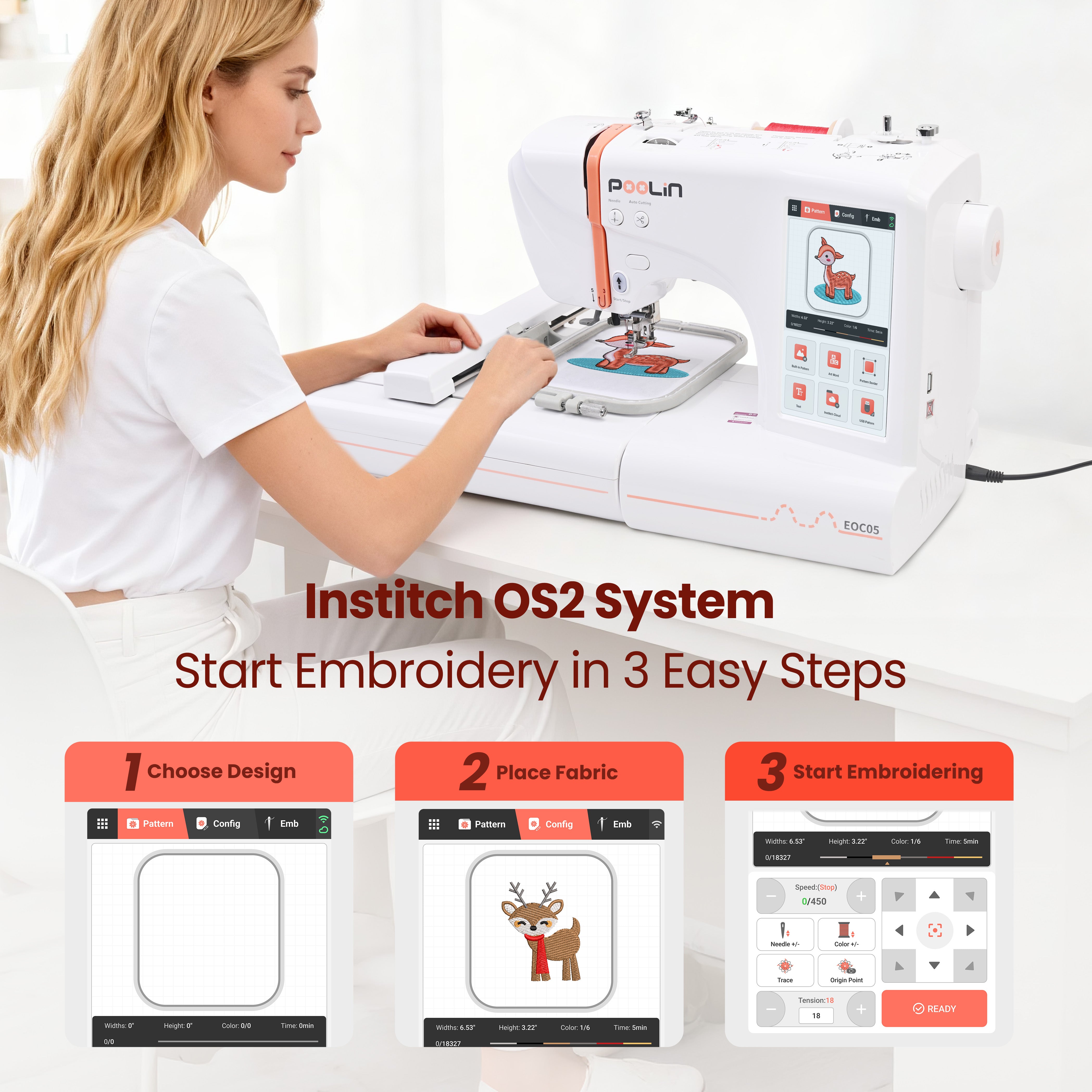 PooLin eoc05 computerized embroidery machine for beginners, perfect for beginners who wants to try a home embroidery machine.