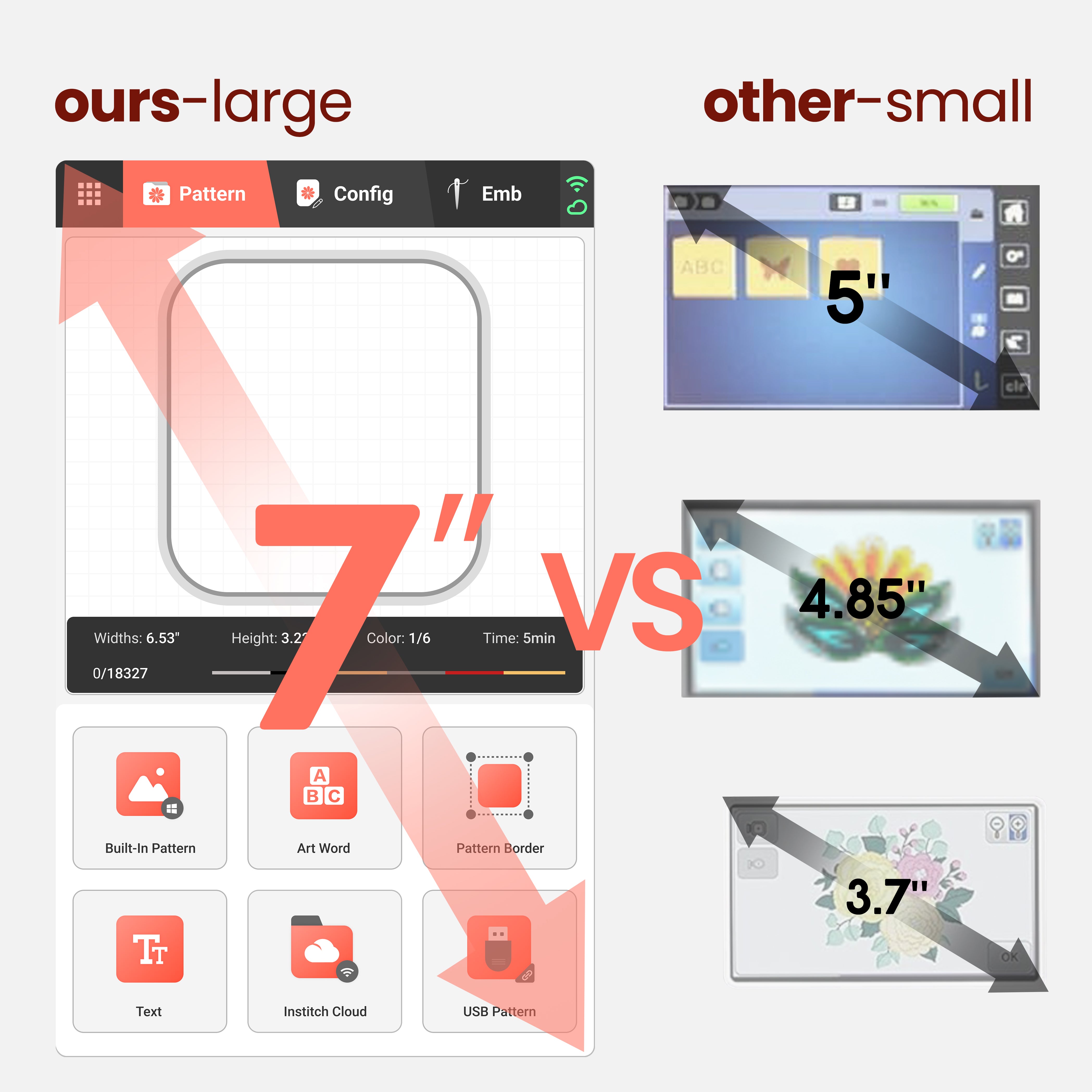 - 7'' Large LCD Touchscreen: Equipped with a 7-inch large LCD touch screen, selecting patterns and editing freely is as easy as operating a mobile phone.
