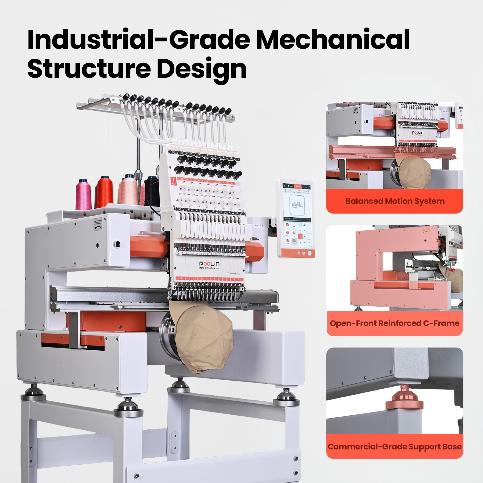 - Reinforced Frame & Balanced Motion Path — Minimizes vibration and maintains accurate, aligned stitches hour after hour.