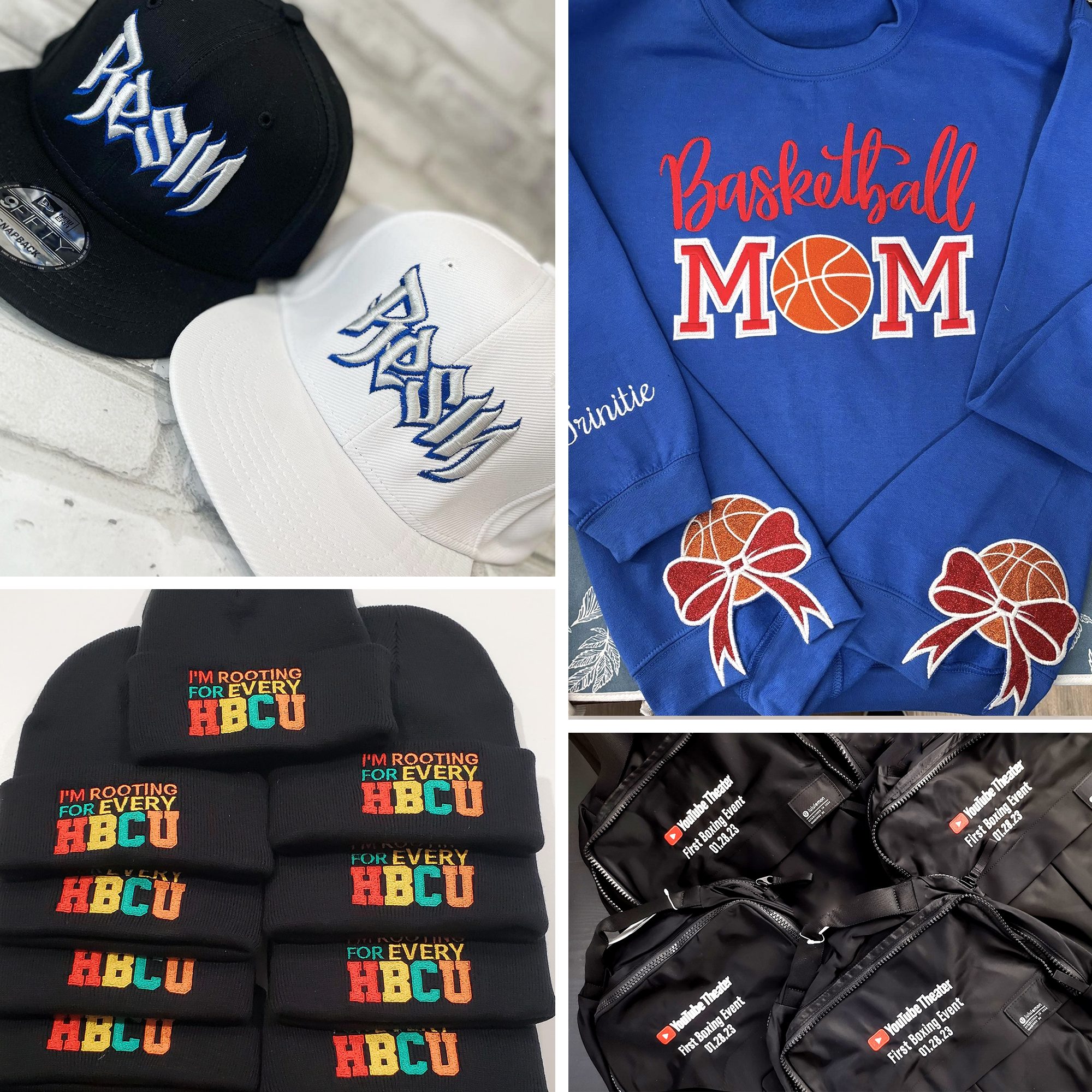 - Clean Cap & Apparel Embroidery — Delivers sell-ready results on hats, caps, sweatshirts, jackets, and custom apparel.