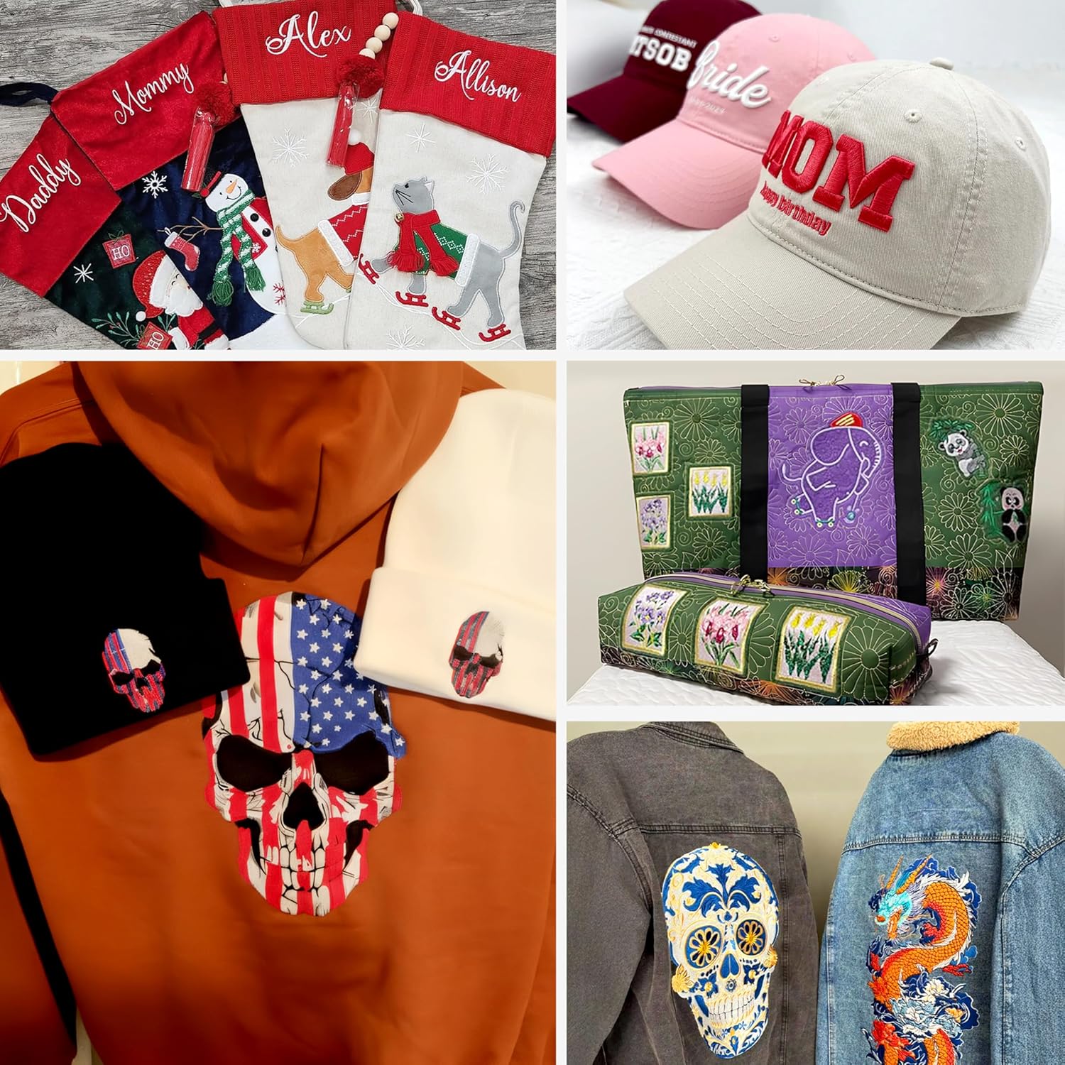 Meet your various embroidery needs, easily complete hat embroidery, patches embroidery, T-shirt embroidery, holiday gift embroidery, etc. Make your ideas come true and enjoy the world of embroidery.
