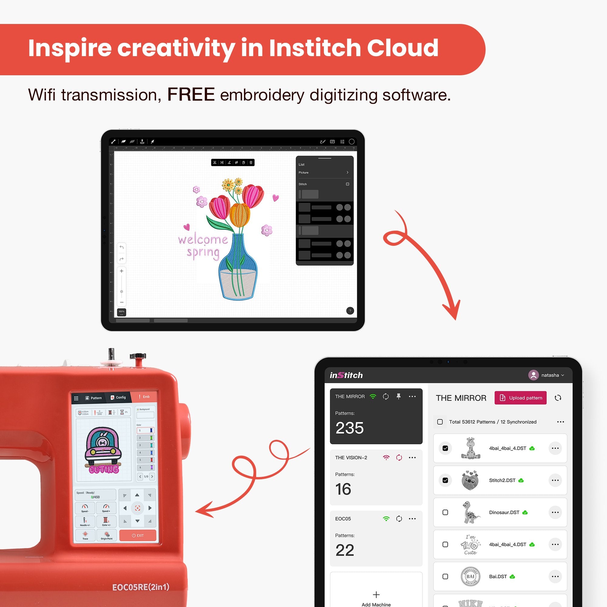 Poolin EOC05RE(2in1) Computerized Sewing & Embroidery Machine , 7" Touch Screen with Wireless Connectivity